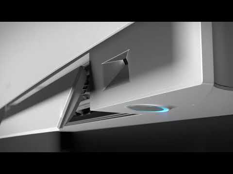 При работа панелът се отваря под ъгъл, оформяйки нови сенки и създавайки усещане за живот и движение – типично за дизайнерската серия на Daikin.